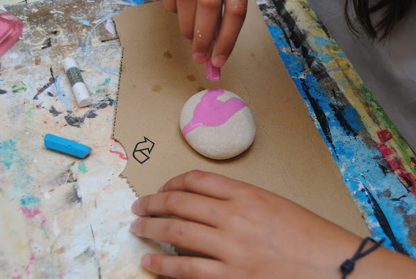 Hemos utilizado esta técnica para pintar piedras (aunque se podría utilizar sobre otros elementos, como por ejemplo conchas de playa). Aquí te dejo la secuencia de todo el proceso: