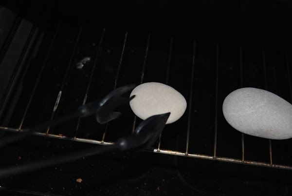 PRIMERO: Calentar las piedras al horno a 180ºC durante 10 minutos. Cuidado, ¡queman!
