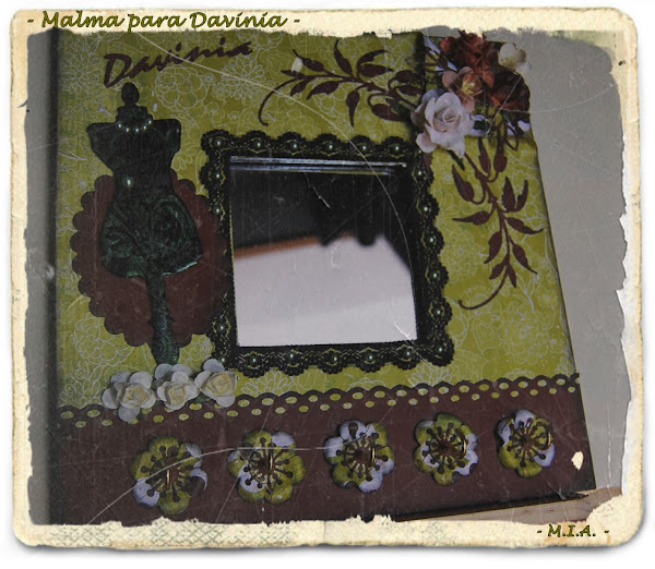 Para el cumpleaños de Davinia, Manolo (el Teacher del Colegio...) me dijo que le hiciera algo bonito. Un malma en tonos verdes y un RIBBA con una foto preciosa de la chica en la que sus ojos hablan... Para el malma utilicé un papel de la Colección Konnichiwa Lucky Cricket, con unos tonos verdes preciosos combinado con marrón chocolate. En la esquina superior derecha hice un doblez con el papel del ...