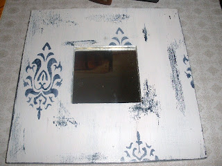 - estarcir el dibujo (yo hice la plantilla con un arabesco que busqué en Internet y recorté en acetato, también vale el papel vegetal o el de hornear) con el color gris payne pero sin dar mucha pintura ni definir muy bien los bordes.Volver a lijar un poco los motivos que acabáis de estarcir. Este paso podéis suprimirlo si no queréis ponerle ningún motivo.