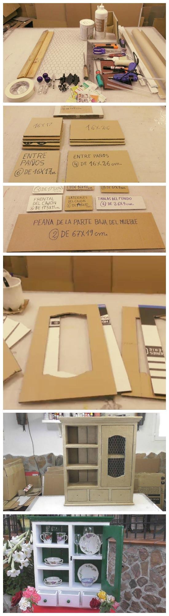 Buenos días amigos. Una vez más os traigo un tutorial de muebles de cartón, pero en este caso se trata de una estantería para la cocina con estilo rústico, como las que se veían en las cocinas de mi época. Curiosamente, estas se han vuelto a poner de moda.