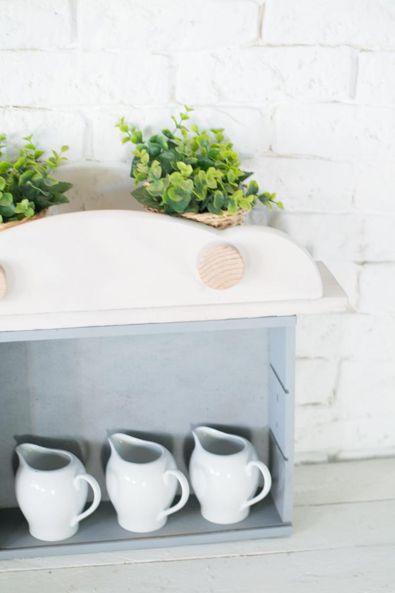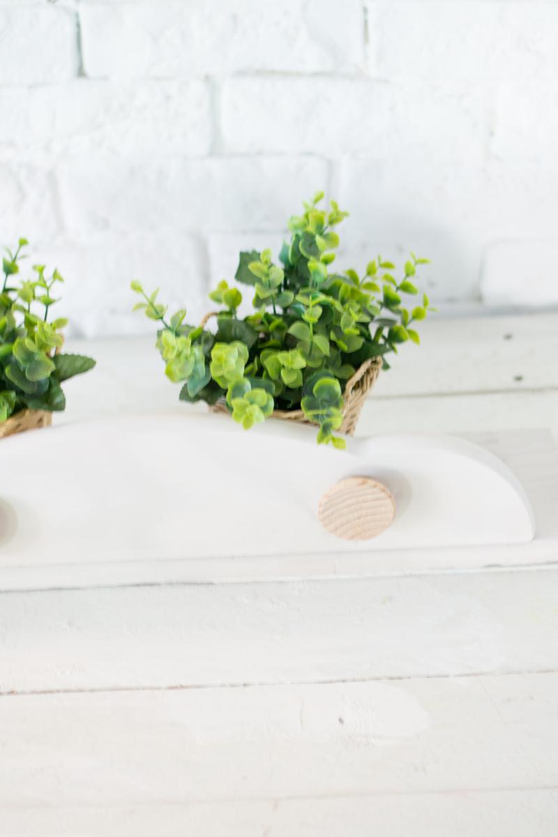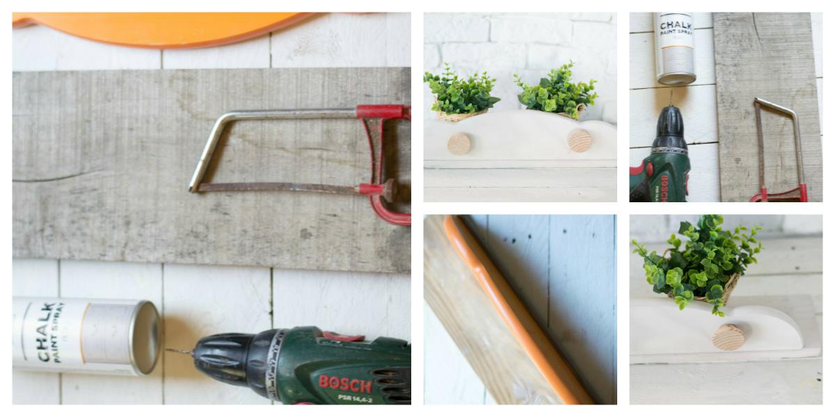 Lo unimos a una tabla de madera de la medida elegida con cola o puntas, para mayor sujección. Después pintamos toda la estructura, en este caso use los sprays de chalk paint ya que me encanta lo sencillo y el resultado tan bonito que queda.