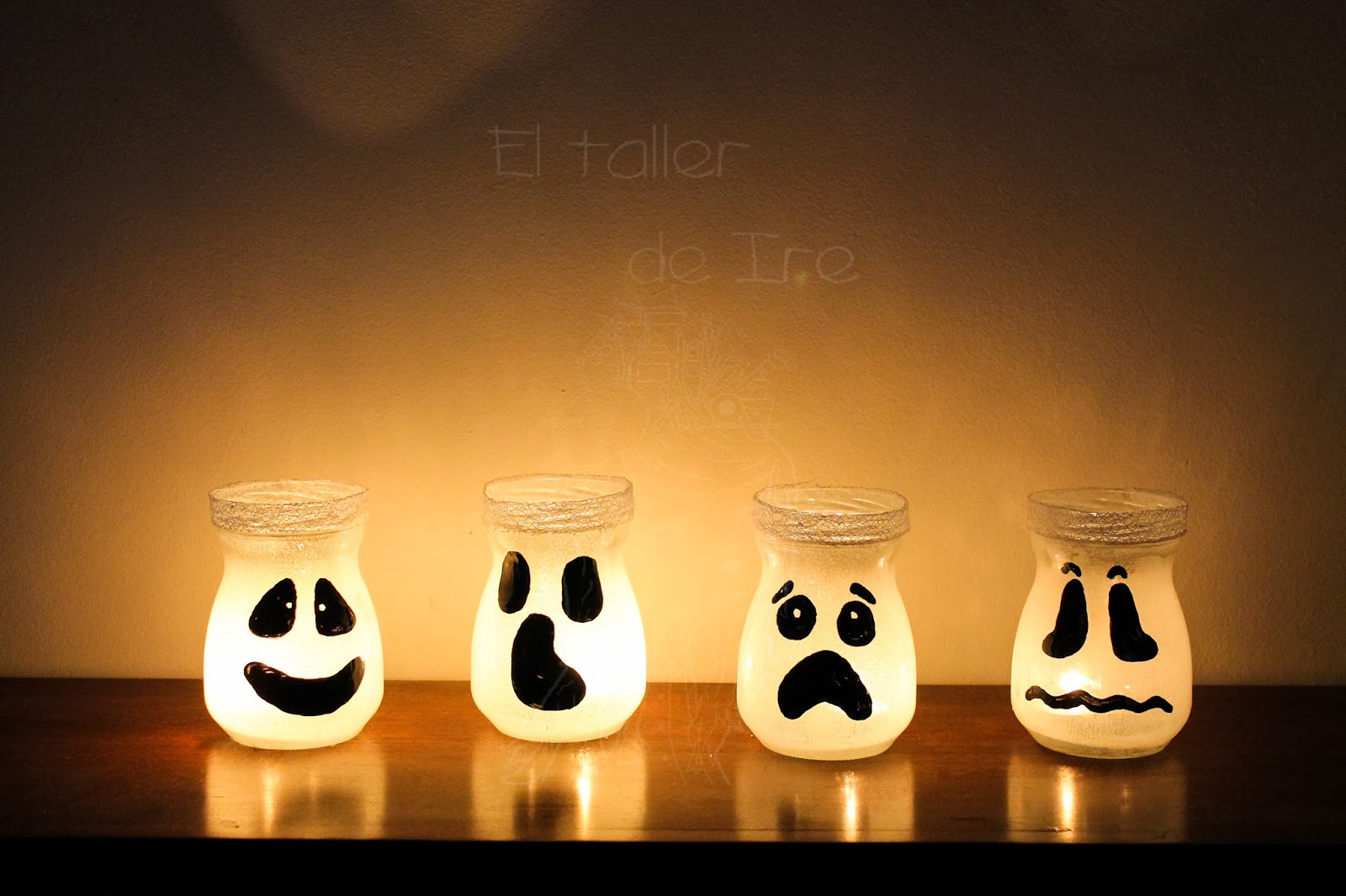 Una de las que más me ha gustado, han sido estos portavelas usando botes de cristal. En el Taller de Ire nos enseña a hacerlos paso a paso. Puedes verlo en "Portavelas de Halloween".