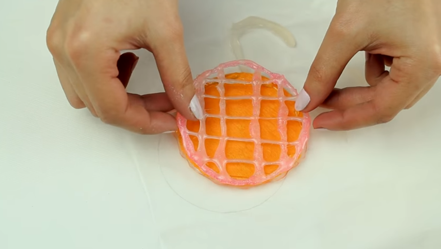-Para empezar, sobre el papel de horno dibujamos el círculo y la forma de nuestro ambientador.