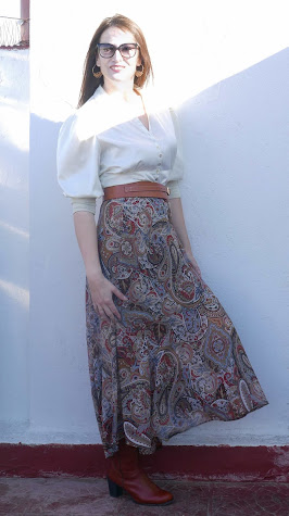No soy muy de faldas en invierno pero recientemente he descubierto unas medias térmicas con las que no me da nada de pereza usarlas. La tela de la falda es gasa así que son el complemento perfecto para que me anime a usarla en invierno (con botas, eso sí).