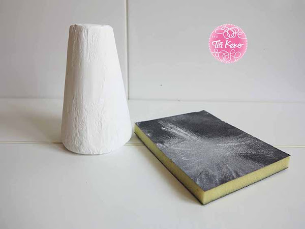 Cuando el yeso esta totalmente seco, cogemos una lija fina y lijamos todo el cono para dejarlo más regular.