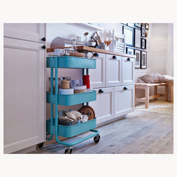 Me declaro fanática del carrito Räskog de Ikea! Ha sido el descubrimiento del lustro!! Lo uso para colocar todos los trastos de costura y hasta la máquina de coser. Así está todo colocado y puedo trasportarlo.