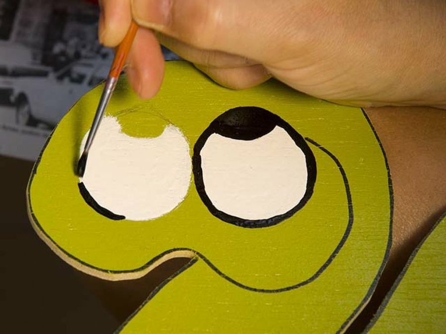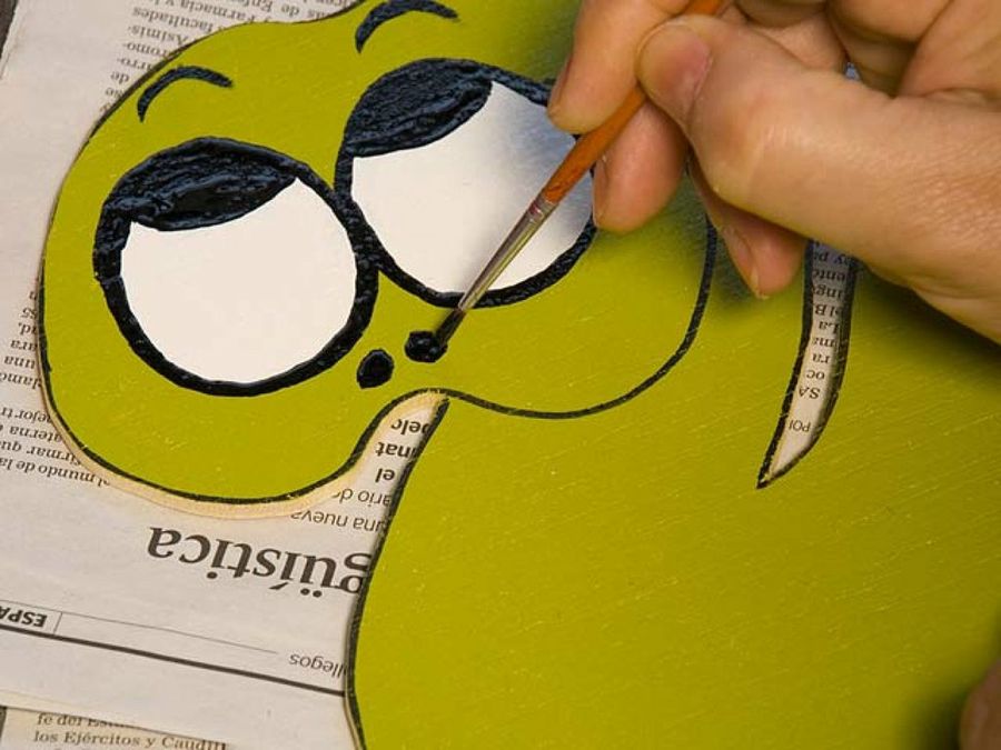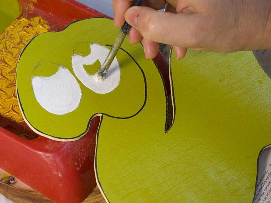 Después de marcar los ojos con lápiz, comenzamos a rellenarlos con pintura blanca, que hará un buen contraste con el verde.