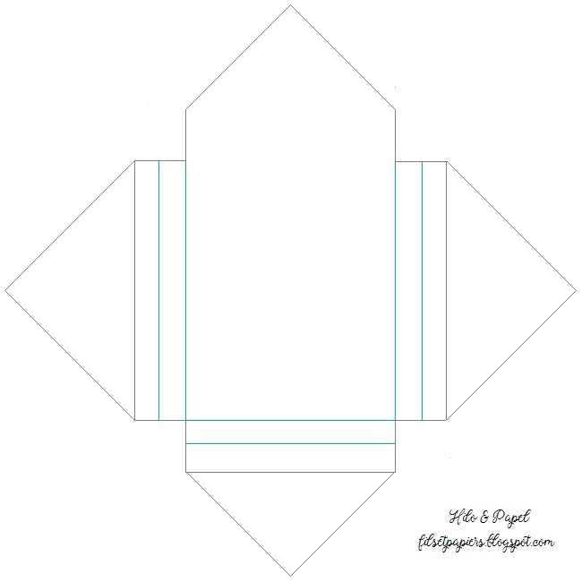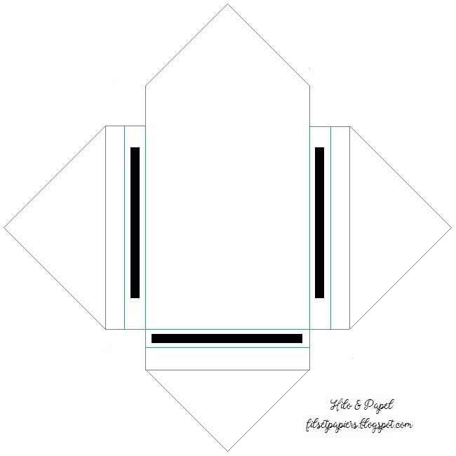 Como yo usé cartulina blanca como base he usado un papel de rayas para todo el exterior dejando 2mm a cada lado, y otro para el interior. Tip: podéis cortar el papel interior de manera que llegue hasta la base o cortarlo a partir de donde se cierra el sobre.