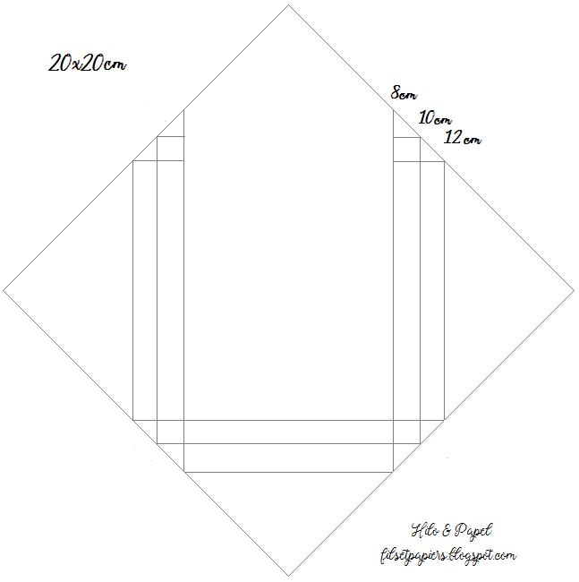 Marcamos con un lápiz que se pueda borrar fácilmente a 8, 10 y 12cm a cada lado exceptuando el que será la parte de arriba, ahí sólo marcaremos dentro de las líneas que nos hayan salido.