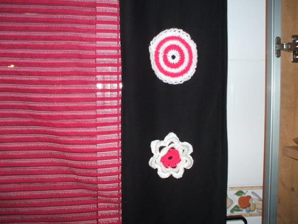He decidido cambiar la cortina de la cocinala voy a poner de color fucsia y como el ventanal es muy grande he hecho tres tiras en negro con la tela doble cada una de ellas miden 25 cms. de ancho y 75 de alto.La tela fuscia la he puesto en recto sin rizo le he cocido una cinta de velcro por que para el techo he puesto una barra de metal con la cinta contraria integrada y en medio y a ambos lados un ...