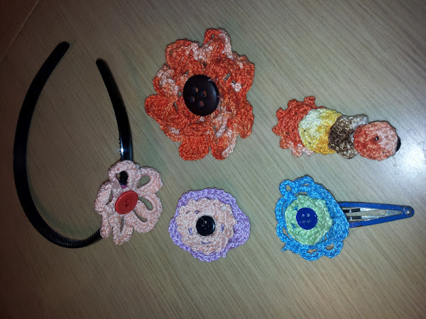 Nolfar decidió decorar diademas y orquillas para el pelo con estas flores de ganchillo tan coloridas.