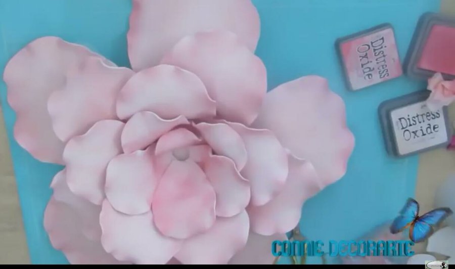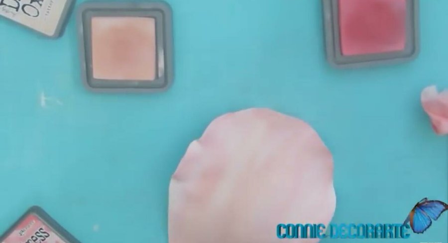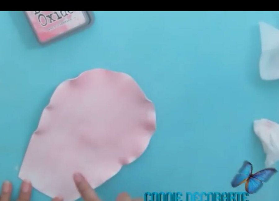 Pintaremos los pétalos aplicando la tinta o pintura en el borde, con un trapito húmedo, luego con el mismo, estiraremos por todo el pétalo, formando rayas, ( como se muestra en el vídeo )