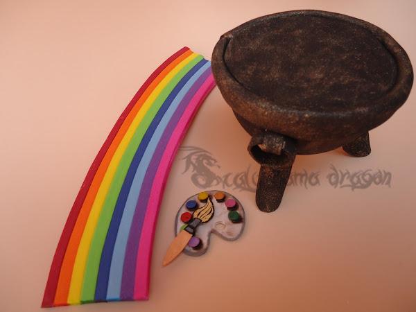 • Abalorios, perlas y monedas para decorar la olla de oro, aunque yo no le coloque las perlas porque al final se me olvido solamente le di volumen con silicon caliente Glitter Rojo y las monedas y lo verán en las fotos finales.