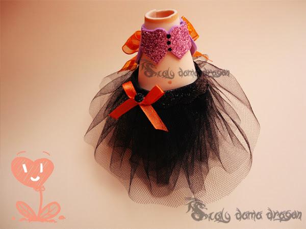 Que no se me olvide que para la falda utilice tul color negro brillante, en la tienda compre 1/2 yarda y me sobro un poco menos de la mitad parece que es poco pero en realidad si se usa bastante.