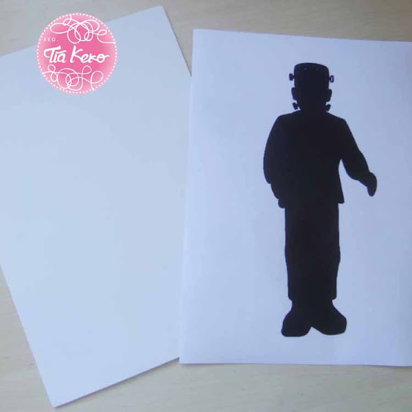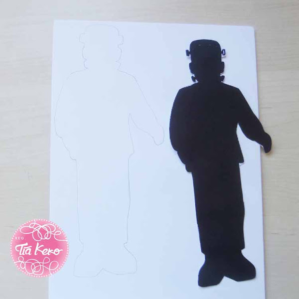 Imprimimos la silueta de Frankenstein en una hoja de papel y la silueteamos en cartón pluma para que tenga algo de consistencia.
