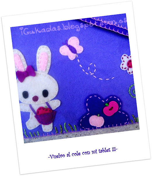 Seguimos con la vuelta al cole, y ya que toca volver a coger los libros, a la rutina y a los madrugones, vamos a alegrarnos con cositas así, como fundas divertidas para el ordenador portátil o la tablet, que además de adornar protegen nuestros aparatitos tecnológicos.Esta está hecha a medida, para el portátil de una jovencita, en fieltro y con aplicaciones de fimo.Así es por fueraY así es el inter ...