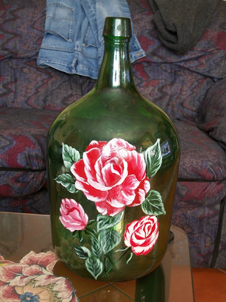 Y por fin puedo publicar un Detalle súper especial, esta pedazo de garrafa, una damajuana como las llamaban antiguamente, de una arroba creo.Ha sido creada con mucho cariño, exclusivamente para una persona muy especial que quería decorar un rinconcito de su casa de campo con sus flores favoritas, los girasoles para irradiar luz, alegría y amor a todo aquel que la mire a la garrafa y a la dueña :-) ...
