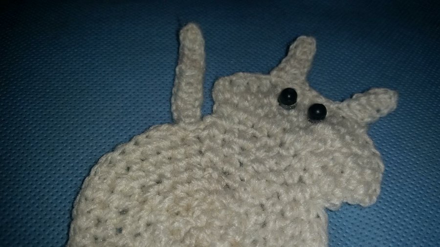 para lo que sera sus ojos y que es lo que le da el toque angelical a nuestra figura, acá vemos que el gato esta de espalda por lo que lo hace mas curioso de ver, así también les recomiendo usar lana delgada para que las vueltas vayan menos gruesa pero eso es cosa de gustos.