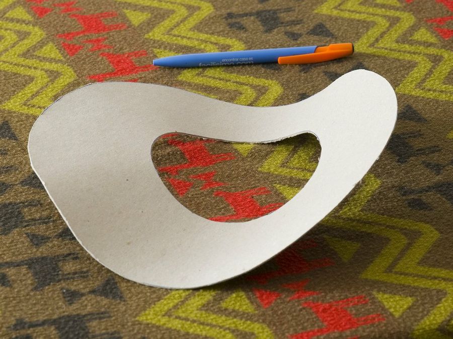 Cogemos ahora otro objeto redondo más pequeño para hacer el hueco donde irá el cucurucho. Lo desplazamos del punto central, ya que nuestro gorro tendrá el ala asimétrica.