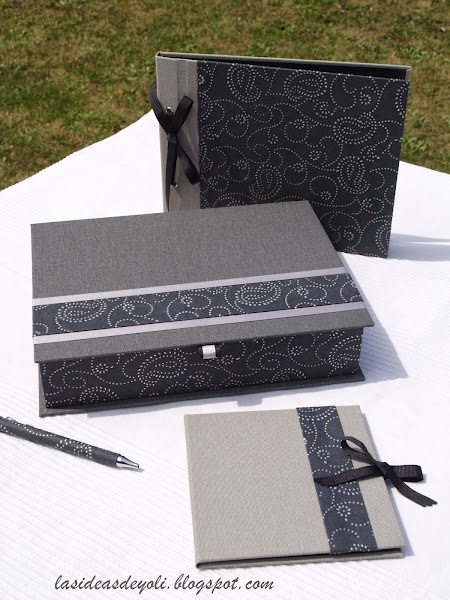 Muy buenos días!!Que os parece este conjunto para regalar en una boda?Dicen que el color gris es triste, pero a mi me parece de lo más elegante, y a vosotr@s ?Esta compuesto por un libro firmas,( se puede utilizar como álbum de fotos también )con su bolígrafo a juego, un porta CD. para guardar momentos inolvidables y la caja a conjunto para guardarlo todo. Totalmente personalizable. .......... Que ...