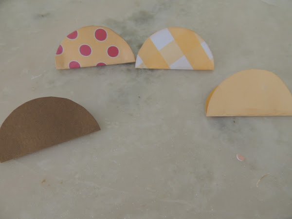 Usando el vaso como molde recortamos varios círculos en los diferentes papeles...