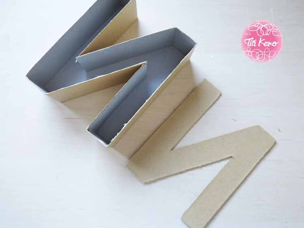 Lo primero es abrir la letra de cartón por detrás, es decir, vamos a quitarle la tapa trasera de la letra. Ayudadas por un cutter vamos a cortar con cuidado por toso el alrededor de la letra para que se vea el fondo. Y lijaremos para que los excesos de cartón que hayan quedado se vayan.