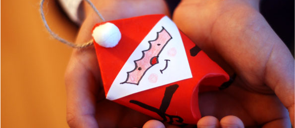 Se clavan las dos patitas del Papa Noel a la bola de isopor ya seca.
