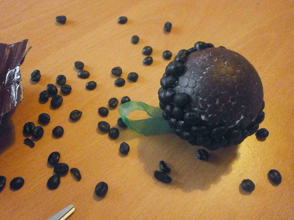 Cuando secó pegue los granos de café con silicona.