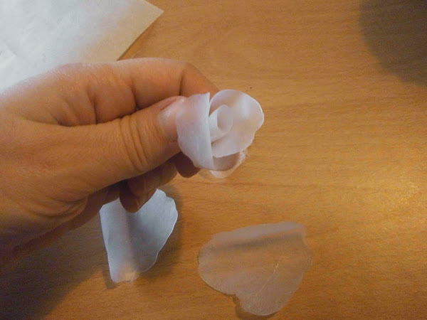 Antes de que se enfriara lo doblé para hacer un pétalo enroscado.