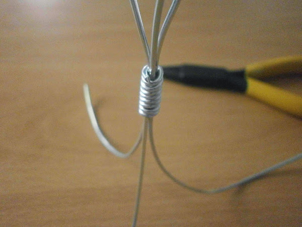Junte los tres alambres y los cerré por el centro con otro trozo de alambre.