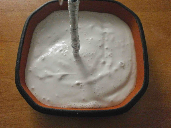 Para sujetar el arbolito le puse yeso con agua en un recipiente y removí.