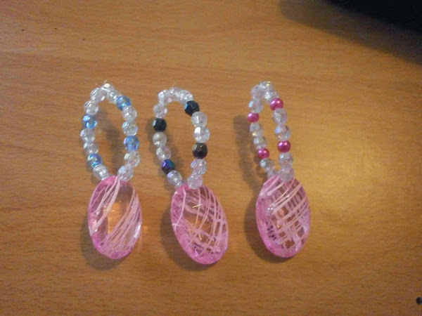 Con el hilo de nylon puse unos abalorios y anudé, hice tres.