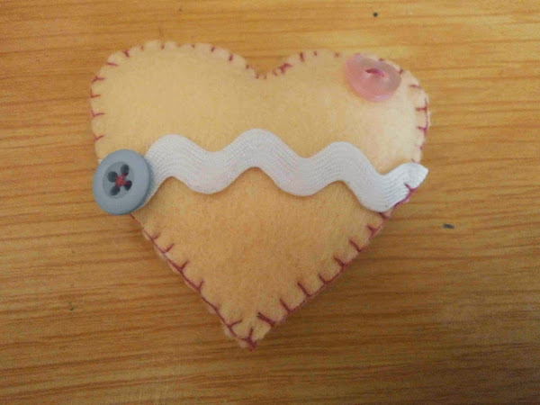Mientras tanto con el fieltro hice dos corazones guiándome por la plantilla de papel.