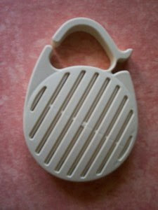 También le pegue botones al colgador para decorar y tripa de pollo a un lado y también por la parte de atrás para tapar el cierre de la tela.