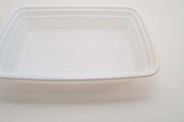 Llena el recipiente de plástico con agua, hasta la mitad.