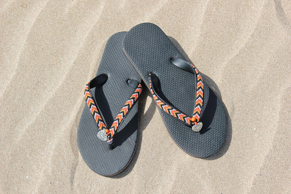 Para hacer estas chanclas étnicas necesitaremos cuatro pulseras de nudos; aquellas que aprendimos a hacer cuando éramos pequeñas. Si no sabéis hacerlas podéis encontrar varios tutoriales en la red. Os dejo un enlace de craftingeek que lo explica muy bien en un videotutorial. Yo las compré porque me salía más caro comprarme los hilos que comprar las pulseras.