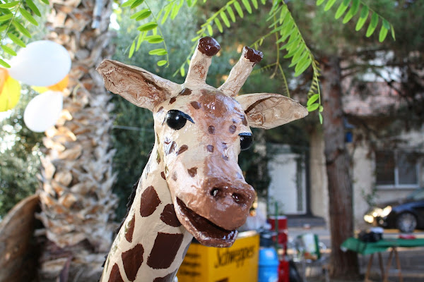 Mientras dejas que el cuerpo de la jirafa se seque casi al completo, vas moldeando suavemente su cabeza. Para la cabeza en sí debes de seguir los mismos pasos anteriores y hacer una bola más pequeña de papel de periódico que cubrirás con papel de aluminio y después con pasta de papel.