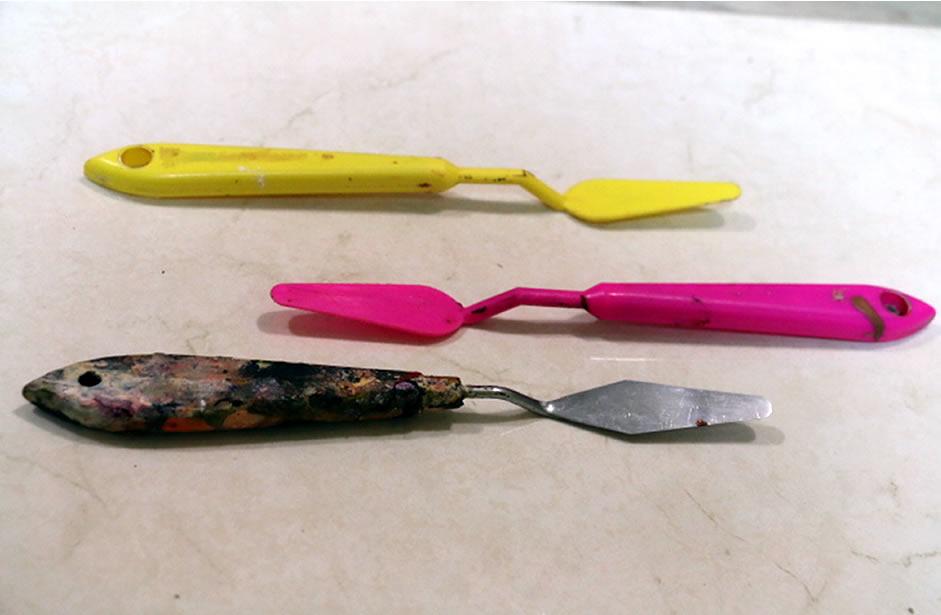 Las espátulas no solo te sirven para tomar pintura sino también para ir creando efectos espectaculares especialmente para crear texturas como por ejemplo plumas, cabello darle mas textura a las flores, etc, etc. Independientemente de la cerámica he visto a artistas realizar verdaderos trabajos solo con una espátula aquí te dejo un video: