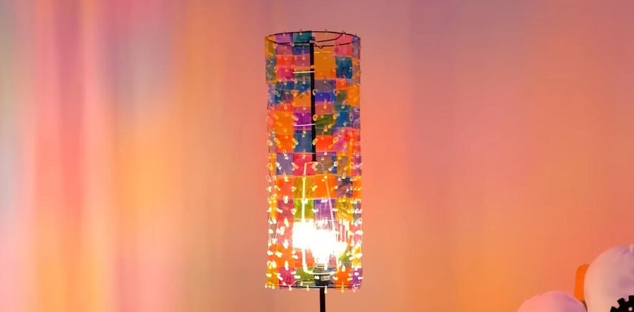 Y nos encanta cómo queda esta lámpara, hecha a base de plásticos de carpetas que no usas ya.