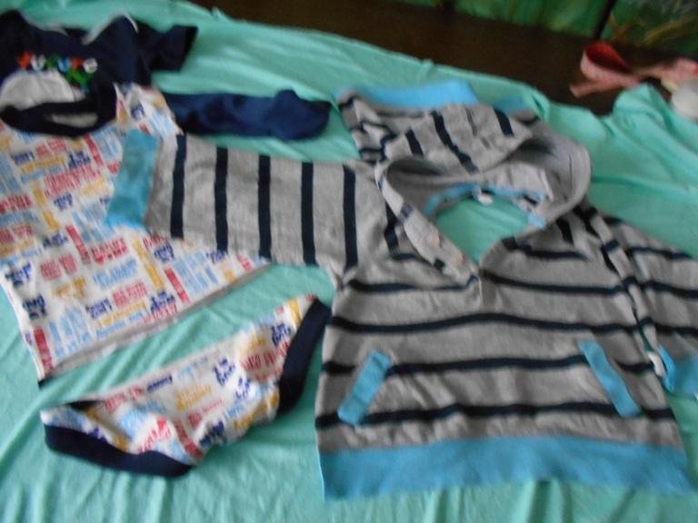 Un conjunto como este tiene la posibilidad de alargar su vida útil para el mismo niño que ha crecido. Con un rib del mismo tono hemos ampliado a los lados, cambiado los puños y la pretina. El pantalón ha sido alargado con rib en la parte que aloja el resorte de la cintura para alargar el tiro y la parte de abajo rib estilo puño para ajustar el largo. De esta manera tenemos un conjunto renovado más amplio y más largo.