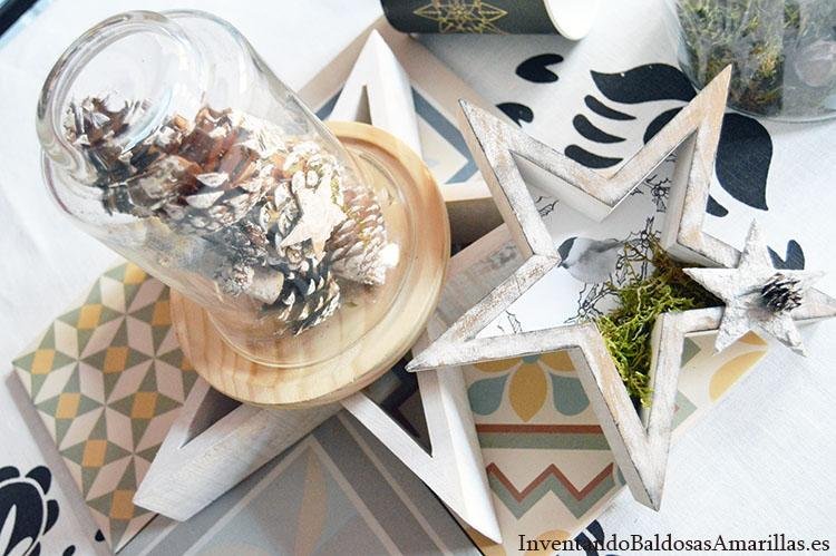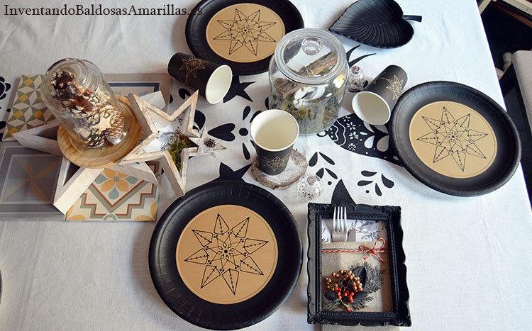 Podemos personalizar casi cualquier elemento usando algo de pintura y ceras de colores. De este modo podemos darle un efecto envejecido a cualquier objeto de madera. Lo que pretendíamos era una mesa en la que el blanco y el negro fueran los grandes protagonistas, pero sin que quedar muy oscura. Por ese motivo aunque hemos empleado platos y vasos de papel hemos añadido objetos de decoración en blanco y alguna nota de color.