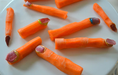Dedos tenebrosos , hechos con zanahorias . Una buena forma que los peques coman verduras :)