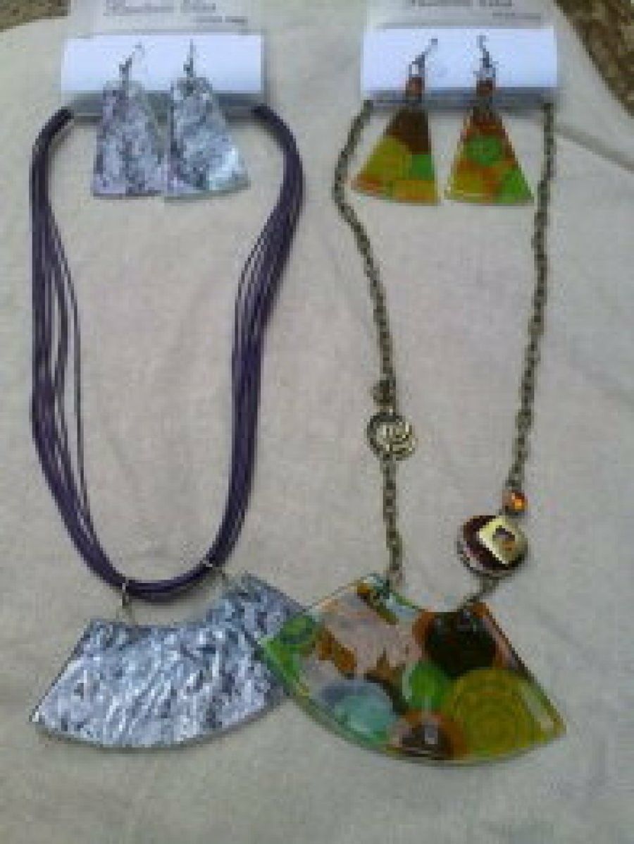 La lectora Elena68 ha diseñado estos dos juegos de pendientes más collares con unos originales toques como fruto de un intercambio de regalos. Uno de ellos tiene tonos plateados y azulados mientras que el otro combina marrones y verdes. Ideales para lucir en primavera y en elegantes fiestas.