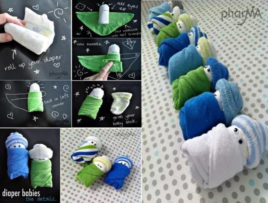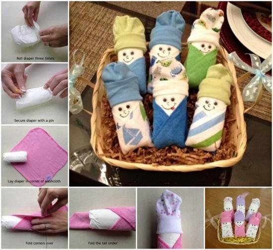Aquí está otra idea fabulosa para la inspiración y decorar una cesta de bebes hechos de pañales ideal para regalar a la futura mama.