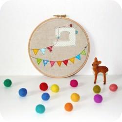 Superando la técnica clasica para bordar y utilizando aplicaciones de tela, fieltro o botones, podemos encontrar bastidores tan bonitos como estos: