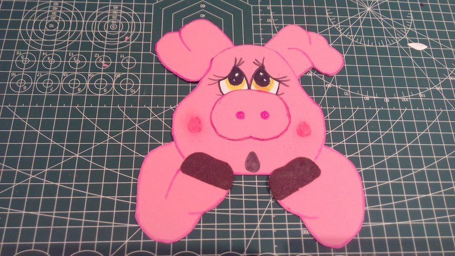 Con rotuladores vamos perfilando y haciendo los detalles de las orejas, nariz...los ojos los podéis pintar con pintura yo todavía no le tengo pillado el truco por eso ahora estamos practicando jeje