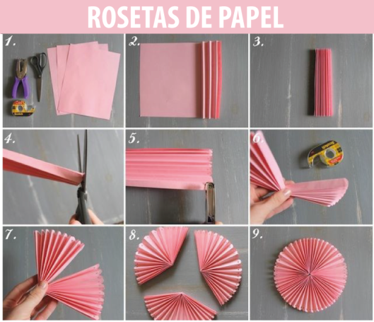 Hay varias formas de hacer estos rosetones de papel. Os dejo unas fotos con el paso a paso de una de las técnicas que se utilizan para hacer en casa: