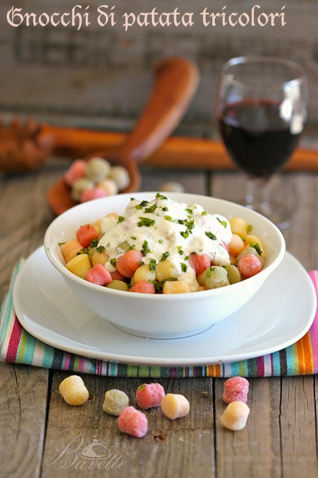 Para continuar, me apetecen unos "Gnocchi di patata tricolori", del maestro Ettore Cioccia, del blog Bavette. Ideal para acompañar algo de carne, los gnocchi siempre son una buena elección. No te pierdas su receta para tomarlos con crema de gorgonzola.