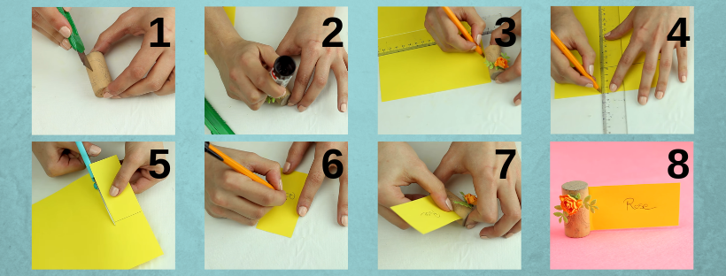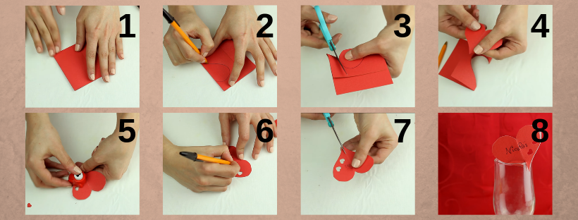 4. Escribimos el nombre de nuestro invitado y hacemos un pequeño corte en la punta de la figura para poder ponerlo en el borde de la copa.